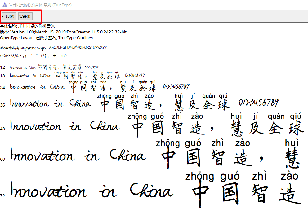 ②可以看见左上角的打印和安装,点击安装即可安装成功,有需求的还可以打印出来哦