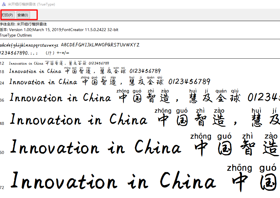 ①在本站下载安装完成之后,解压缩【米开细行楷拼音体.tff】