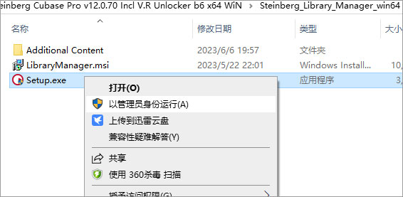 5、接下来再安装cubase12pro,解压Cubase_12.0.70_Installer_win64.zip,选中Setup.exe右键以管理员身份依提示运行;