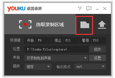 视频文件默认保存在优酷PC客户端安装文件夹(eg:D:\Youku Files\capture\),如需修改,点击“修改”按钮,选择新的存储位置。