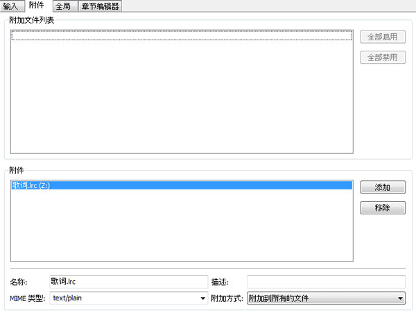4、选择要写入的歌词以及其他附件