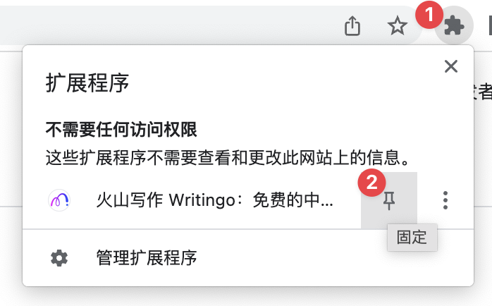 建议大家将插件固定到浏览器工具栏,以便随时访问和观察插件的启用情况,操作步骤如下: