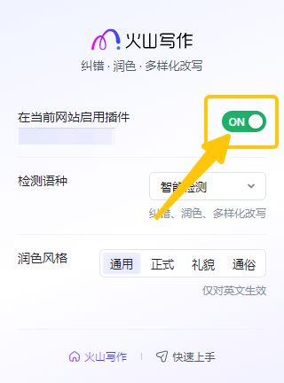 此外,火山写作还上线了插件版本,可以在 Chrome 和 Edge 浏览器使用,插件在浏览器输入时自动检查你的错别字、拼写、语法和表达,让你的文本更加准确、表达更加地道。目前已适配大部分网站的输入框以及各种内容输入平台,如 Gmail、Notion、飞书文档、微博等。
