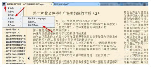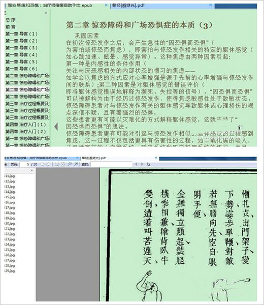 1、这里以pdf和epub文件为例,这两个采用不同的样式,我们可以看到pdf背景色是白色的,看就了比较伤眼睛,而EPUB的默认背景色偏红,这里我们都不太满意,我们把它们改为绿色的护眼色;