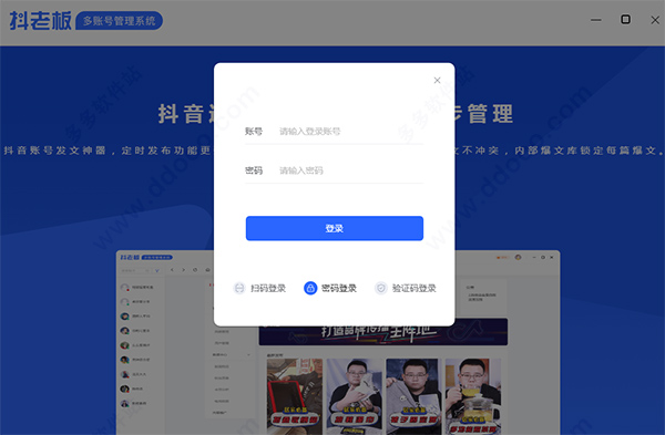 1、在本站下载安装抖老板软件,运行软件,单击中间的登录注册按钮使用账号登录,没有账号的需要使用手机接收验证和使用邀请码注册,邀请码可以在网上搜索