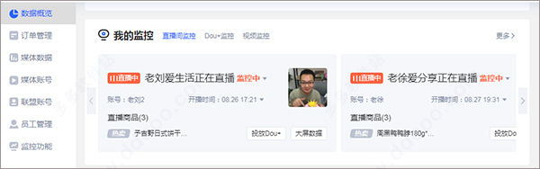 4、提示直播监控界面,在软件显示直播中的信息,支持投放Dou+、支持大屏数据;