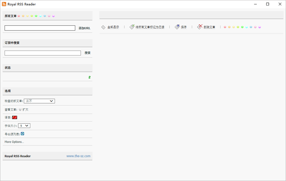 Royal RSS Reader是一个体积超小的绿色版RSS阅读器,只有100KB大小,下载后直接运行就能用。它的界面非常简洁,操作起来也很方便。打开软件后添加一个RSS地址,就能开始订阅了。