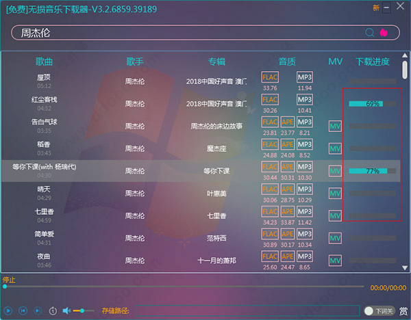 5、下载可以同步进行多个文件6 试听栏,播放和暂停,这个应该都没问题,试听支持鼠标拖动进度条