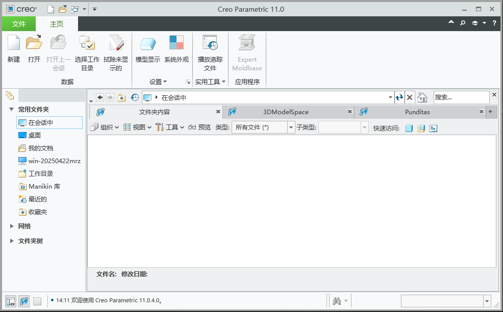 15、桌面双击打开Creo 11.0软件,安装完成,运行界面如下。