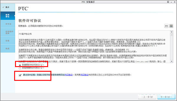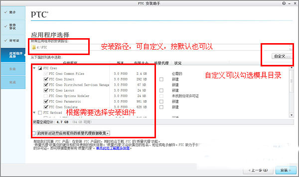11、安装路径更改为“d:\PTC”,应用程序用户可根据需要选择安装;