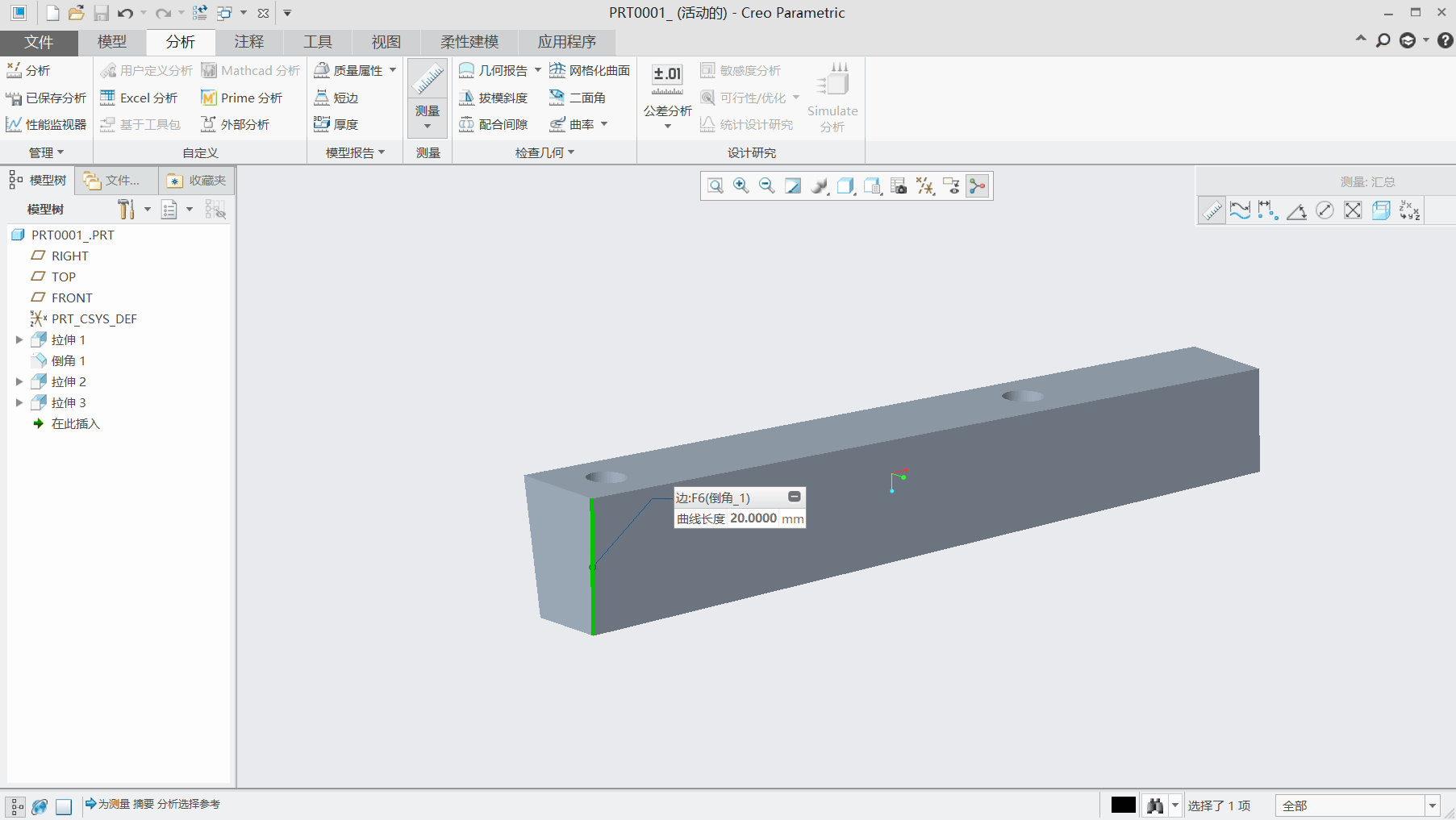 点击 “分析”——“测量” ,选择一条边查看单位,发现确实修改成毫米了