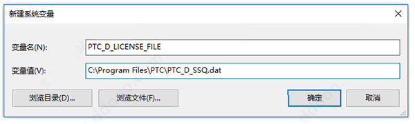 变量值:指向PTC_D_SSQ.dat 【如:C:\Program Files\PTC\PTC_D_SSQ.dat】