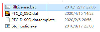 3、打开PTC.LICENSE.WINDOWS.2020-04-14-SSQ文件夹,右键管理员身份运行FillLicense.bat,会自动生成许可证文件PTC_D_SSQ.dat;