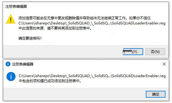 10、成功安装软件后,双击SolidSQUADLoaderEnabler.reg导入注册表;