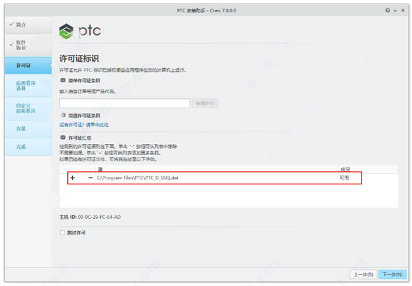 8、安装程序会自动识别已设置好的许可证;