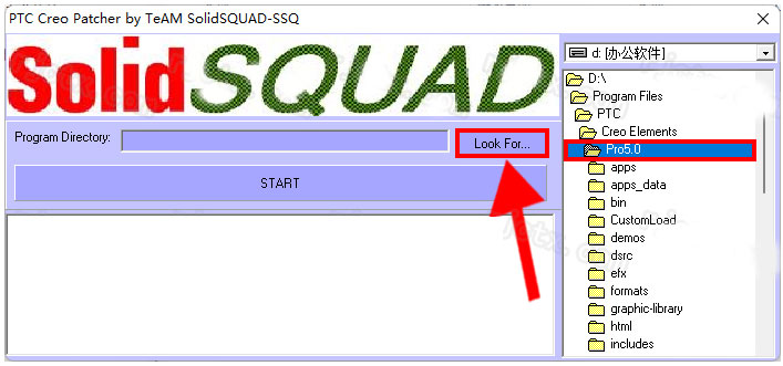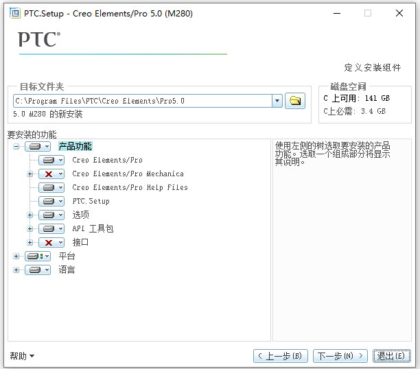 ② 选择【D:\Program Files\PTC\Creo Elements\Pro5.0】(设置的安装位置)