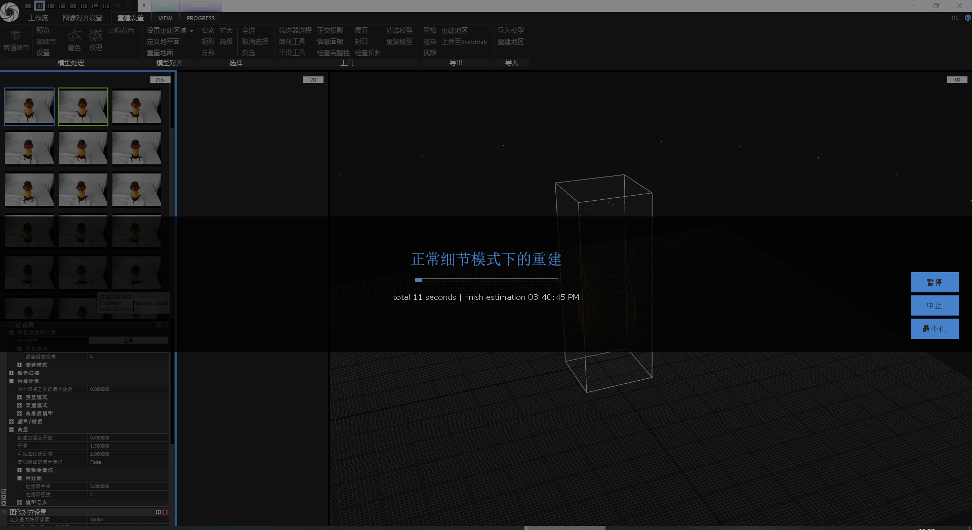 7、点击普通细节开始重建。