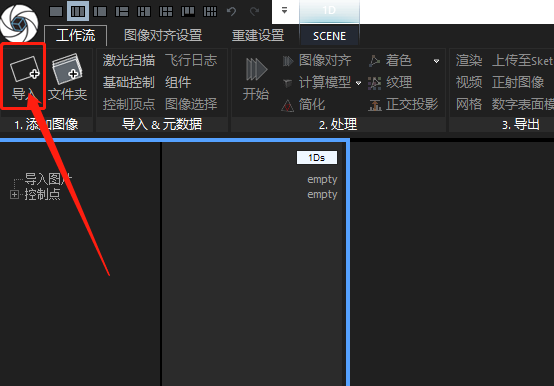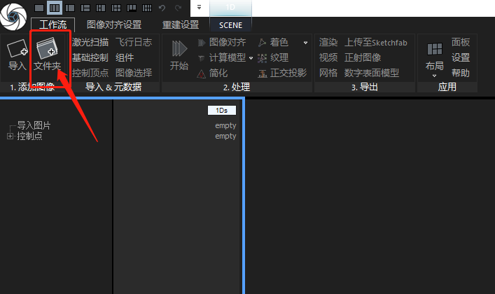 图片导入方式二:将包含图像的文件夹拖入软件。可包含子文件夹一并导入。如果没有图像也可导入激光扫描或者航拍照片的样本。