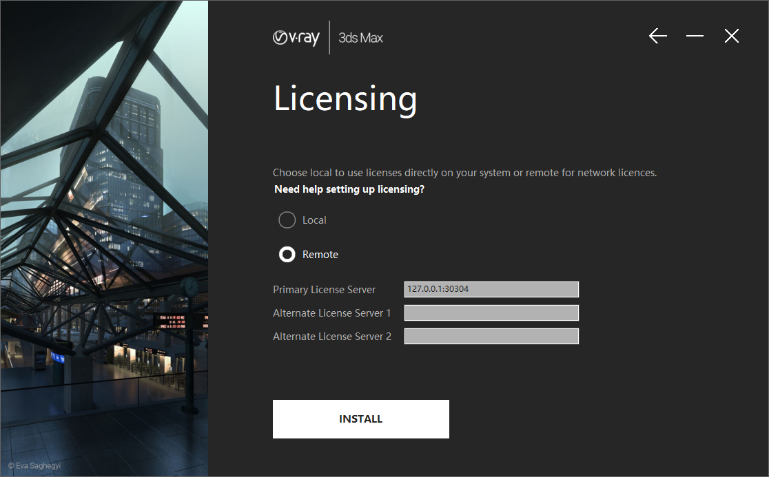 6、选择许可类型【Remote】,然后点击【INSTALL】