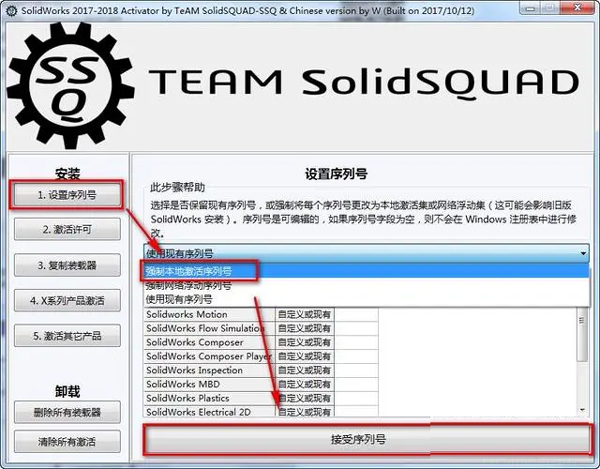 b.下拉菜单中选择“Force Local Activation Serial Numbers”