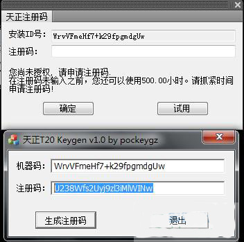 6、接着我们打开解压文件下的注册机文件T20Keygen_v2.00.exe,选中上图中的安装IDh号复制到注册机的机器码中,并点击“生成注册码”按钮。
