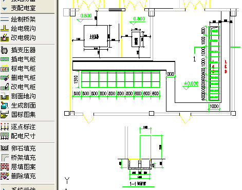 快速绘制配电柜及电缆沟的平、立、剖面图。方便对电缆沟及配电柜的参数化编辑,配电柜尺寸、编号可自动生成、调整。自动生成变配电室剖面图。