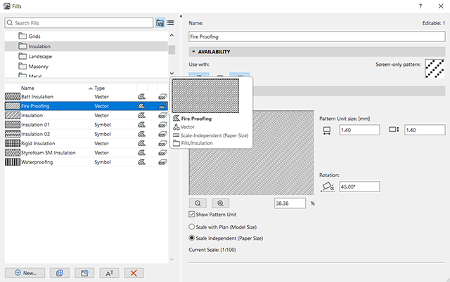 Archicad 27通过引入关键属性的文件夹,简化了属性管理工作流程。Archicad 27继续这一发展,引入了文件夹和搜索栏,用于其他属性,如填充和线条。