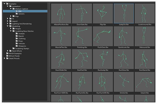 内容浏览器中提供了新的运动捕捉示例骨架。
