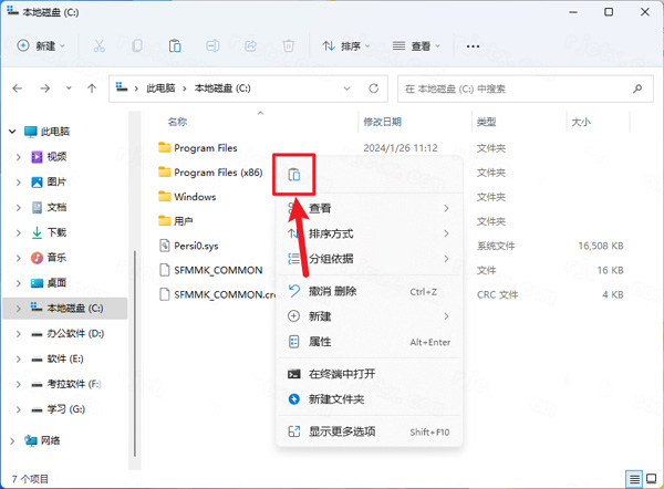 2、打开电脑C盘,鼠标右击空白处选择【粘贴】