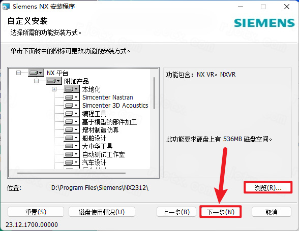 5、所有产品前方不出现红色的“X”,点击【浏览】修改路径地址中的第一个字符C可更改安装位置(如:把C改为D软件将安装到D盘),点击【确定】后,点击【下一步】