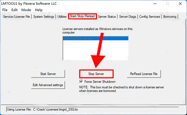 11、点击【Start/Stop/Reread】,勾选【Force Server Shutdown】,点击【Stop Server】