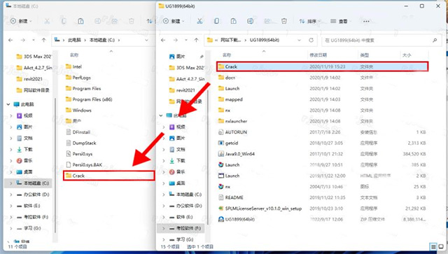 5、再打开安装包解压后的文件夹,将【Crack】文件夹【复制】到 C盘 根目录