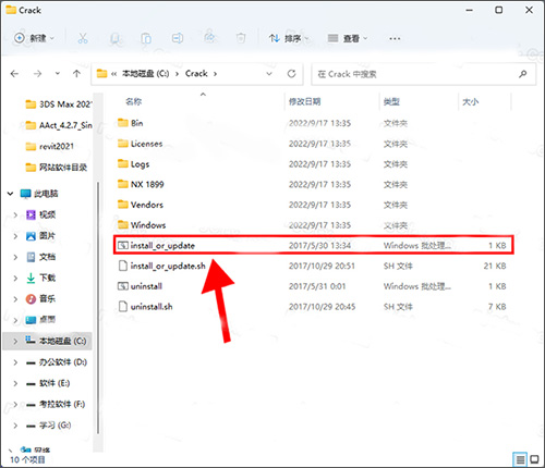 6、打开粘贴后的【Crack】文件夹,右击【install_or_update】选择【以管理员身份运行】