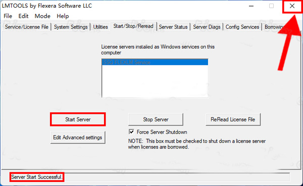12、当提示”Start Server Successful“点击右上角【X】退出