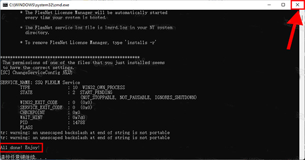 7、红框位置提示“All done!Enjoy”,点击右上角【X】退出