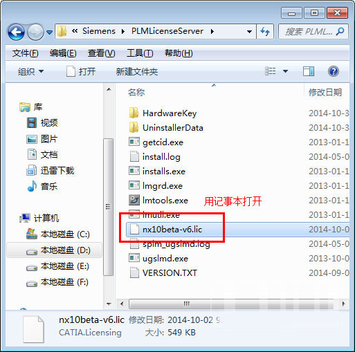 3)找到文件“nx10beta-v6.lic”用记事本打开;