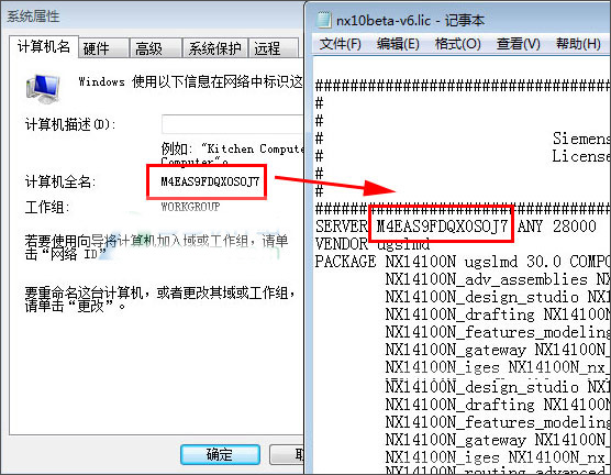 5)将计算机名称复制到nx10beta-v6.lic替换,并保存;