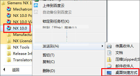 3)开始菜单,发送ug10.0的快捷方式到桌面上;