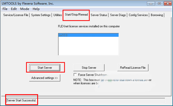 8)再点击“start/stop/reread”,选中nx10.0,点击“start server”启动;