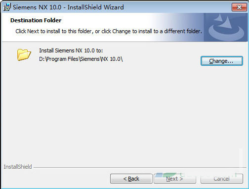 4)点击change,更改安装路径为【D:\Program Files\Siemens\NX 10.0\】