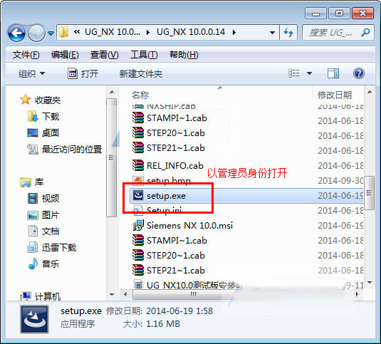 1)选中“setup.exe”以管理员身份运行;