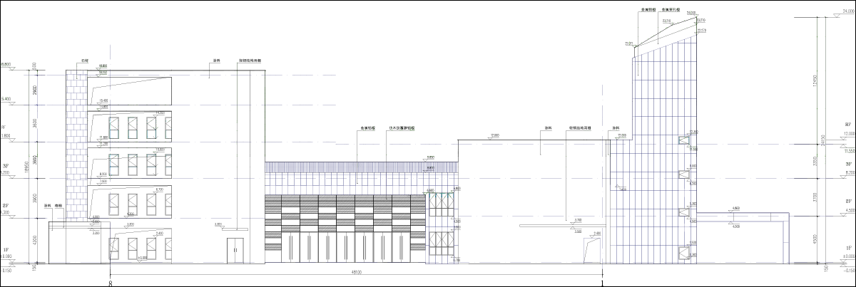 由当前工程的平面图,获取参数并建立三维模型后,可生成立面和剖面图。方便设计师完成立面、剖面的设计工作。