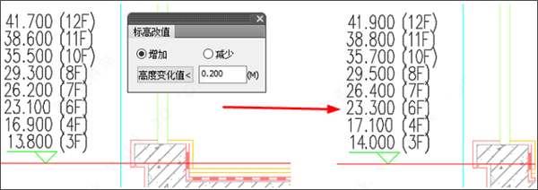 14、新增【标高改值】命令,可以批量对标高增加或减少指定标高值;