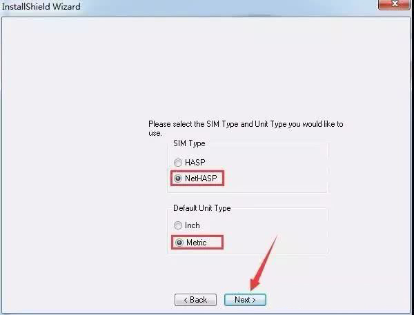 5、这一步请务必选择许可文件类型为"HASP" 和"Metric"
