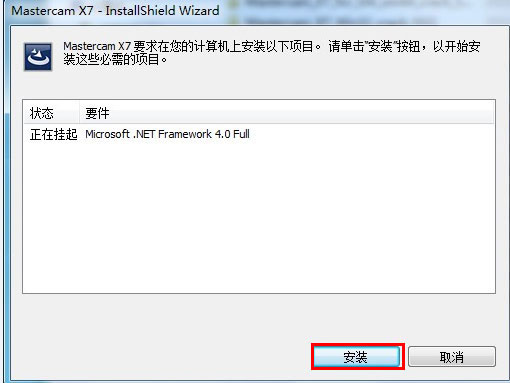 一. 安装对应系统的主程序,如64位系统打开mastercamx7-x64-web.exe,选择语言,点击安装必备项目。
