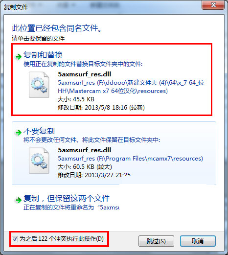 先将Mastercam X7程序关闭,打开汉化文件夹将resources文件夹复制到MasterCAM X7安装目录下完全覆盖即可,如默认为C:\Program Files\mcamx7