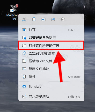 7、双击打开【mcamX9】文件夹,全选文件夹中的文件,右击点击【复制】,鼠标右击桌面【Mastercam X9】图标选择【打开文件位置】