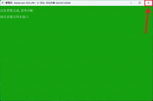 19、界面提示“汉化完成……”后点击右上角【X】关闭