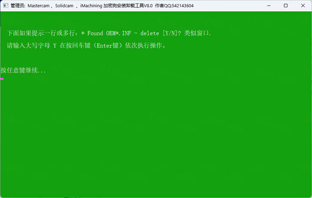 15、如果出现Y/N提示,输入【Y】,在键盘上按【Enter】键。界面提示“驱动安装完成”后在键盘上按【Enter】键