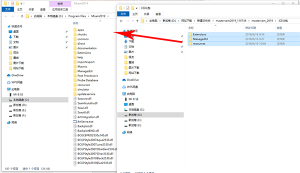 1、在本站下载解压,得到mastercam2019安装包、补丁和汉化包;